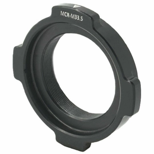 Model ten łączy urządzenia dodatkowe z gwintem M33,5x0,75 za pomocą adaptera zaciskowego Rusan Modular.