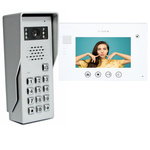 - Dwa moduły wyświetlacza, moduł klawiatury, moduł kamery i moduł sterowania bramą: Kompleksowa konfiguracja wideodomofonu, zapewniająca dostęp do wszystkich funkcji systemu, w tym sterowania bramą.