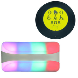 - System oparty na przycisku wezwania SOS, który umieszczamy na wysokości wzroku oraz lampki sygnalizacyjnej, która po naciśnięciu przycisku zaczyna świecić i wydawać dźwięk.
